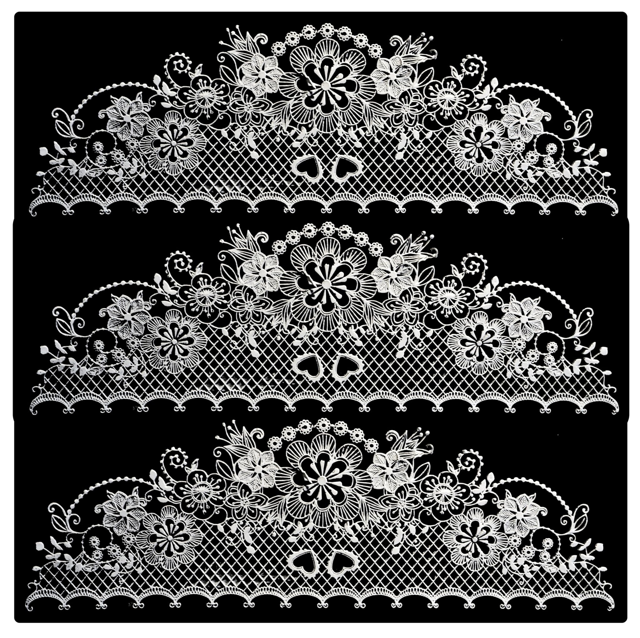 Include 3 pieces lace, lace length 33cm ( 13 inch ), Height 11cm (4.5") total length of 1 package is 99cm ( 39 inch)