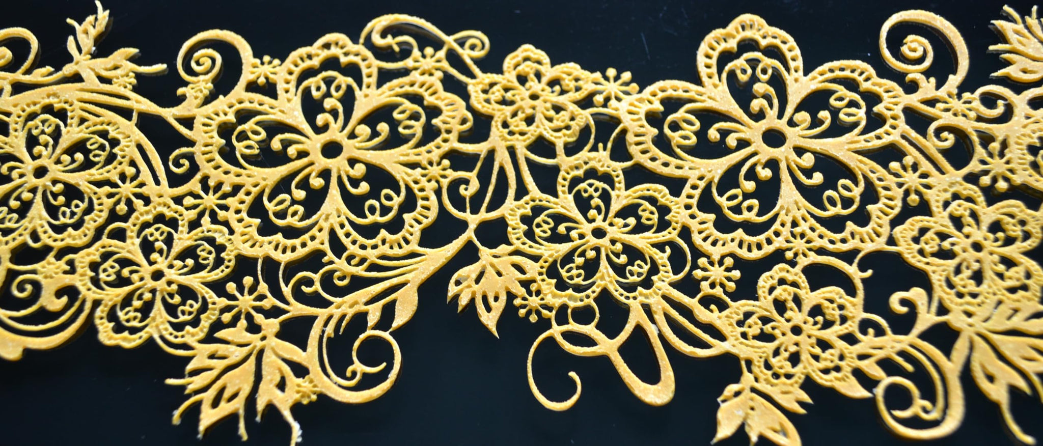 • The readymade lace pieces can easily be cut with a scissors